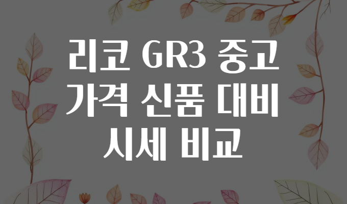 리코 GR3 중고 가격 추이를 알면 좋은 이유 🌟