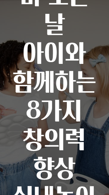 "비 오는 날 아이와 함께하는 8가지 창의력 향상 실내놀이"라는 제목은 바로 부모님과 아이들의 행복한 시간을 위해, 비 오는 날 실내에서도 아이의 창의력과 두뇌발달을 돕는 다양한 놀이 방법을 소개하는 내용입니다! 🎉🌧️👶